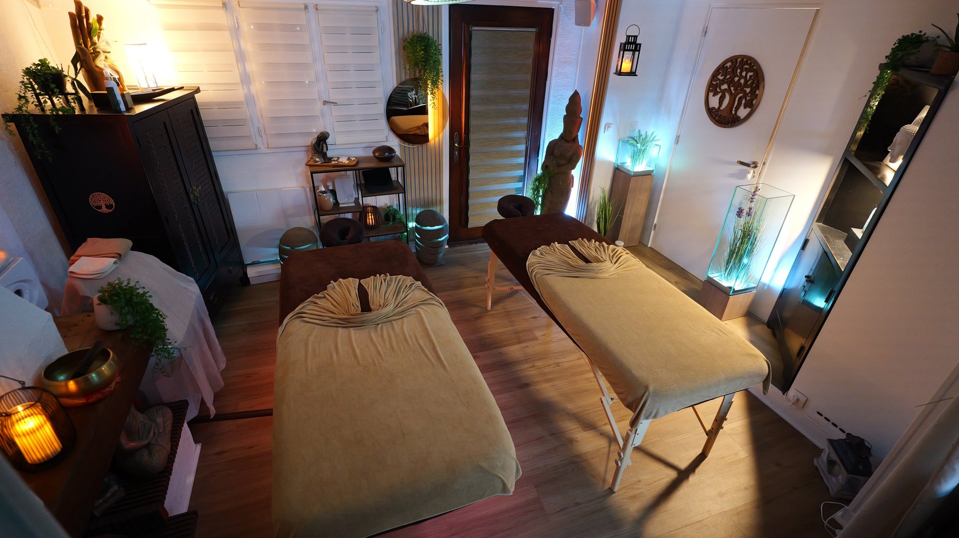 Chacun reçoit son massage dans le même espace, au même moment, dans une ambiance apaisante et respectueuse.